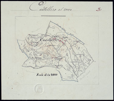 "Il titolo non è presente sulla carta. Gruppo di 51 mappe catastali di diversi comuni, impiegate con tutta probabilità per la costruzione della carta generale degli Stati Sardi al 50.000. Senza firma, eccetto due, firmate da Lagrange, una riduzione del piano catastale del territorio d'Ivrea firmato Valsecchi 1822, e una riproduzione dei piani catastali di comuni della provincia d'Ivrea firmata Cap. Roggero."