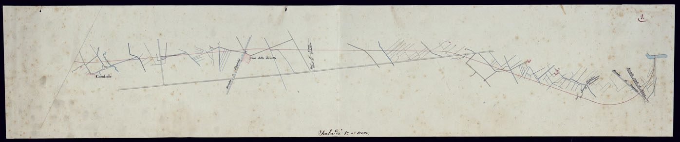 "Il titolo non è presente sulla carta. Planimetrie di vari tronchi di ferrovia. Epoca 1851-1871. Disegni ad acquerello impiegati probabilmente per la carta generale segli Stati Sardi al 50.000."