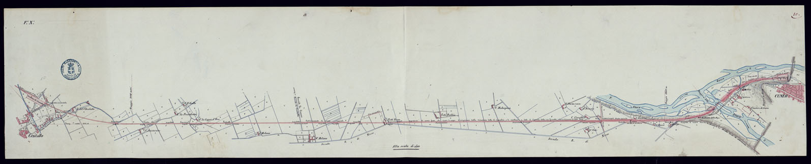 PLANIMETRIA DEI VARI TRONCHI DI FERROVIA SAVIGLIANO-CUNEO - FOGLIO 10.