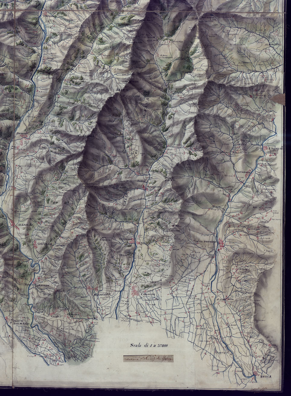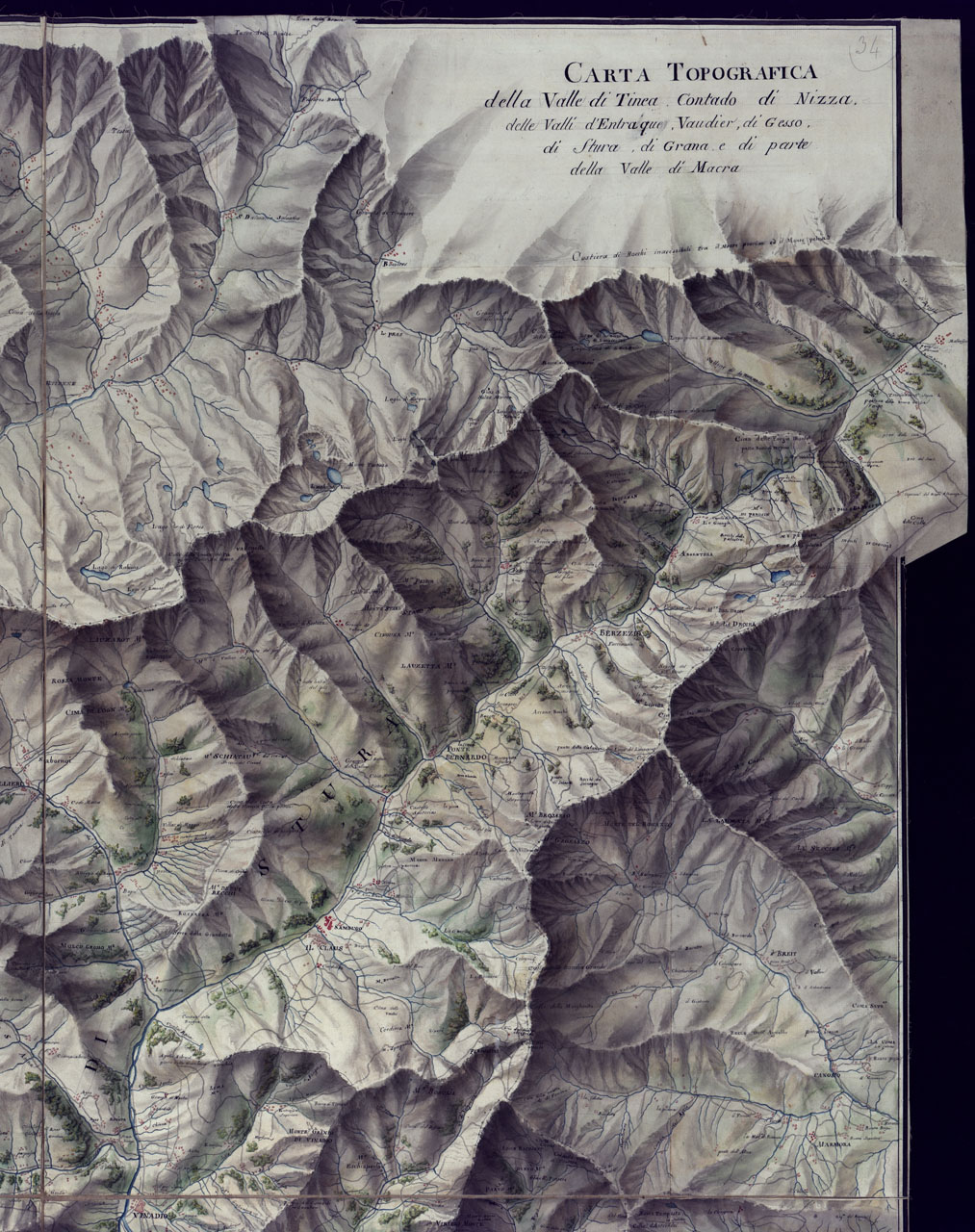 CARTA TOPOGRAFICA DELLA VALLE DI TINCA CONTADO DI NIZZA DELLE VALLI DI ENTRAQUE, DI VAUDIER, DI GESSO, DI STURA DI GRANA E DI PARTE DELLA VALLE DI MACRA SCALA DI 1 A 37.800.