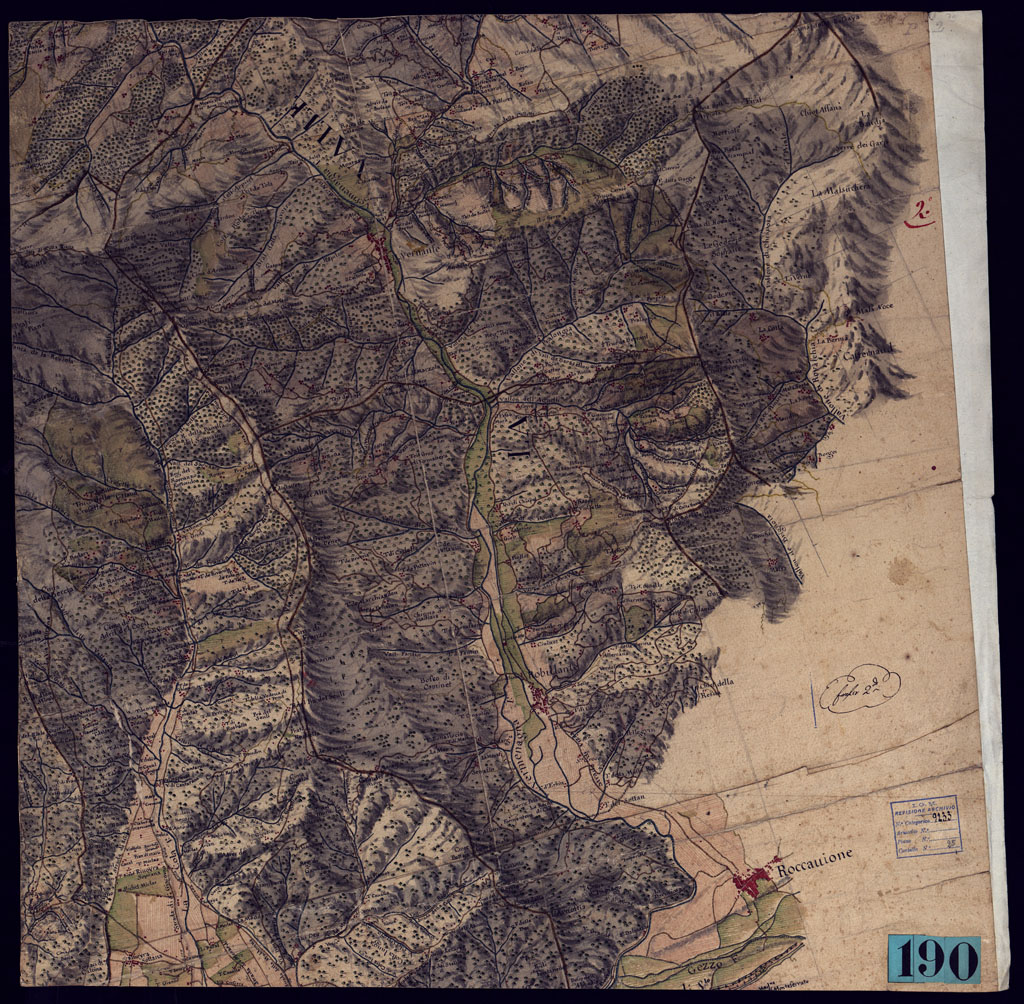CARTA TOPOGRAFICA DEL CORSO DELLA VERMAGNANA DALLE SUE SORGENTI SINO AL BORGO DI S. DALMAZZO VERSO IL SUO CONFLUENTE NELLA STURA RITROVASI ANCHE LA COLA TORRENTE DALLE SUE SORGENTI A BOVES PARTE 1°- FOGLIO 2.