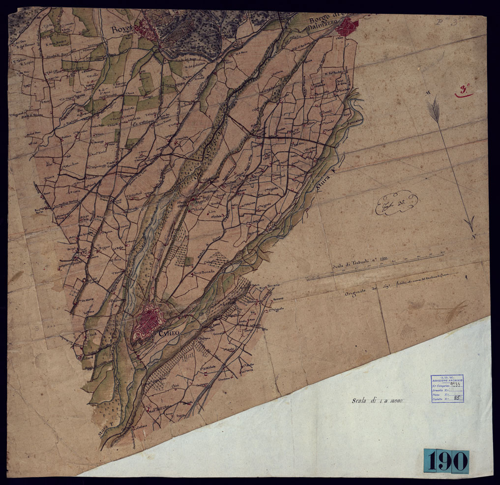CARTA TOPOGRAFICA DEL CORSO DELLA VERMAGNANA DALLE SUE SORGENTI SINO AL BORGO DI S. DALMAZZO VERSO IL SUO CONFLUENTE NELLA STURA RITROVASI ANCHE LA COLA TORRENTE DALLE SUE SORGENTI A BOVES PARTE 1°- FOGLIO 3.