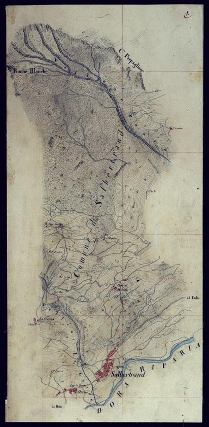 VALLE DELLA DORA EXILLES MINUTE AL 10.000. RILIEVI ESEGUITI NEL 1864 ALLIEVI INGEGNERI DEL R. CORPO DEL GENIO CIVILE ALLA SCALA DI 1 A 10.000 - FOGLIO 1.