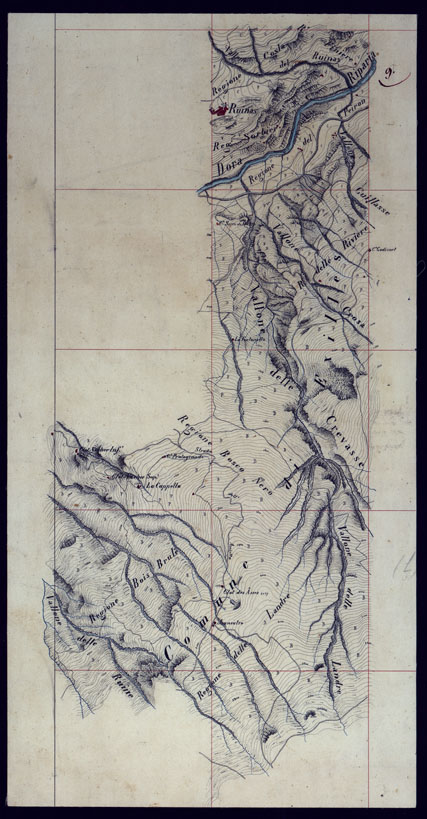 VALLE DELLA DORA EXILLES MINUTE AL 10.000. RILIEVI ESEGUITI NEL 1864 ALLIEVI INGEGNERI DEL R. CORPO DEL GENIO CIVILE ALLA SCALA DI 1 A 10.000 - FOGLIO 9.