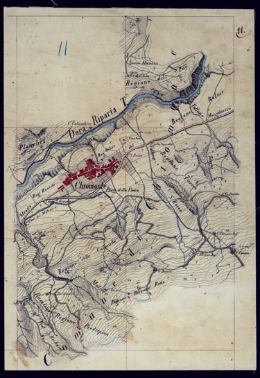 VALLE DELLA DORA EXILLES MINUTE AL 10.000. RILIEVI ESEGUITI NEL 1864 ALLIEVI INGEGNERI DEL R. CORPO DEL GENIO CIVILE ALLA SCALA DI 1 A 10.000 - FOGLIO 11.