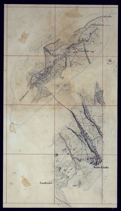 VALLE DELLA DORA EXILLES MINUTE AL 10.000. RILIEVI ESEGUITI NEL 1864 ALLIEVI INGEGNERI DEL R. CORPO DEL GENIO CIVILE ALLA SCALA DI 1 A 10.000 - FOGLIO 14.