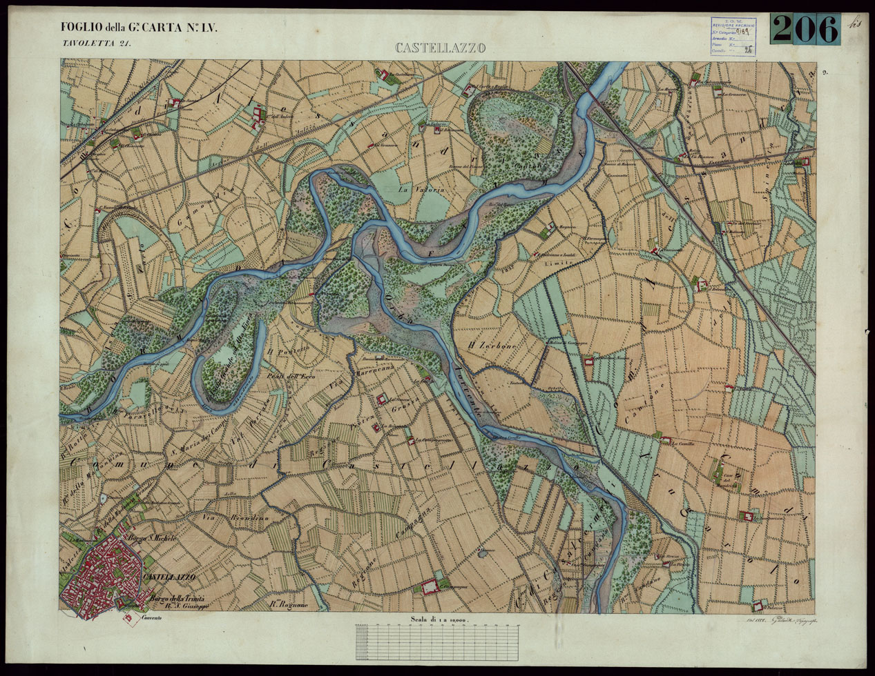TERRITORIO COMPRESO TRA ALESSANDRIA, CASALE, VOLPEDO E TRA PAVIA, CASTEGGIO E PIACENZA - FOGLIO DELLA G.N. CARTA N°LV. TAVOLETTA 21 CASTELLAZZO.