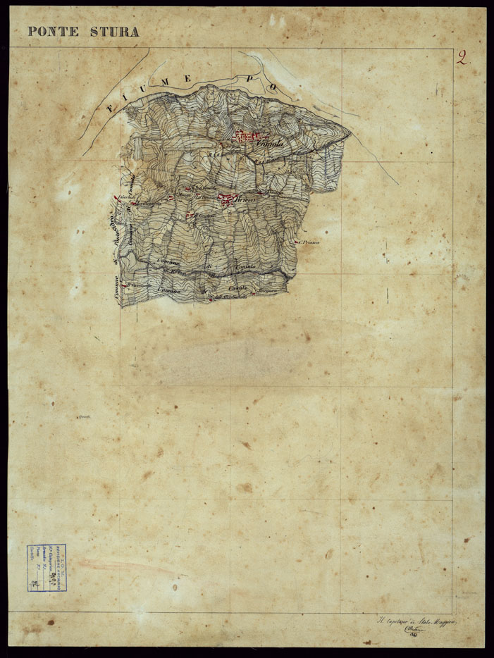 GRUPPO DI 132 FRAZIONI DI MINUTE DI CAMPAGNA ALLA SCALA 1:10.000 DEI RILEVAMENTI ESEGUITI NEL 1853-1867 - PONTESTURA - RILIEVI OPERATORE N. 2.