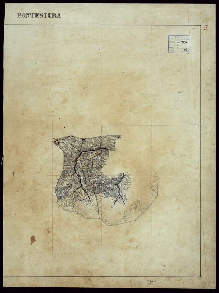 GRUPPO DI 132 FRAZIONI DI MINUTE DI CAMPAGNA ALLA SCALA 1:10.000 DEI RILEVAMENTI ESEGUITI NEL 1853-1867 - PONTESTURA - RILIEVI OPERATORE N. 5.