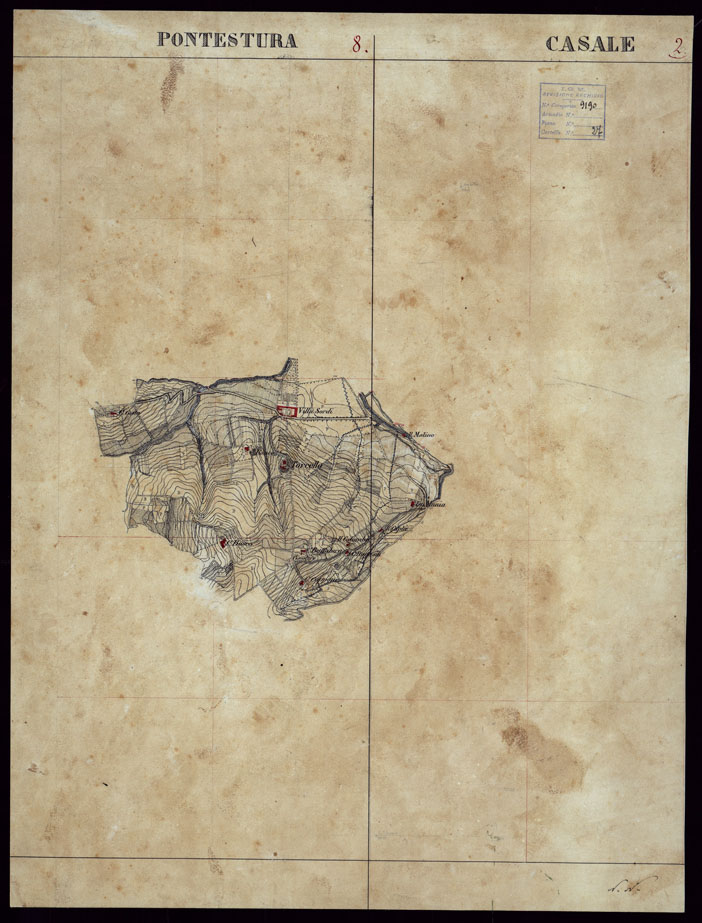GRUPPO DI 132 FRAZIONI DI MINUTE DI CAMPAGNA ALLA SCALA 1:10.000 DEI RILEVAMENTI ESEGUITI NEL 1853-1867 - PONTESTURA - RILIEVI OPERATORE N. 8 CASALE RILIEVI OPERATORE N. 2.