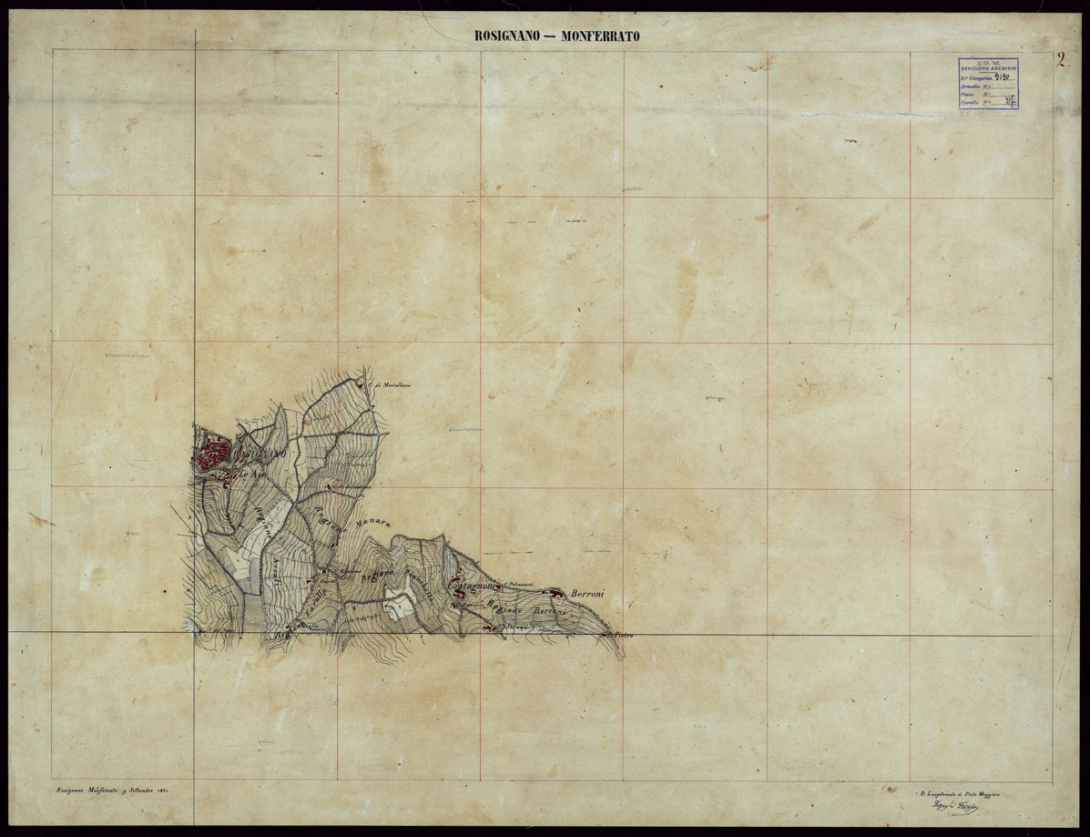 GRUPPO DI 132 FRAZIONI DI MINUTE DI CAMPAGNA ALLA SCALA 1:10.000 DEI RILEVAMENTI ESEGUITI NEL 1853-1867 - ROSIGNANO - RILIEVI OPERATORE N. 2.
