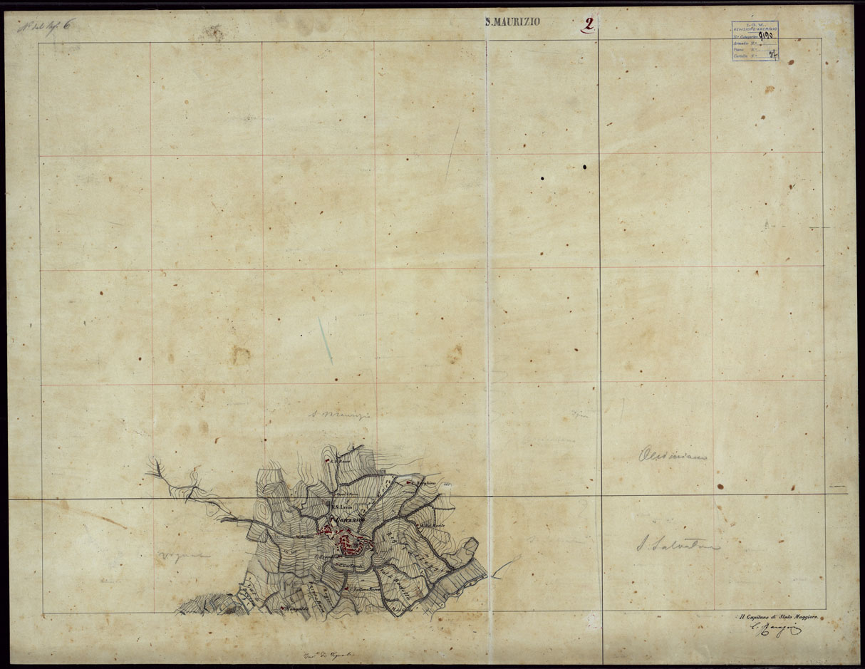 GRUPPO DI 132 FRAZIONI DI MINUTE DI CAMPAGNA ALLA SCALA 1:10.000 DEI RILEVAMENTI ESEGUITI NEL 1853-1867 - S. MAURIZIO - RILIEVI OPERATORE N. 2.