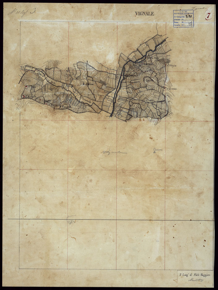 GRUPPO DI 132 FRAZIONI DI MINUTE DI CAMPAGNA ALLA SCALA 1:10.000 DEI RILEVAMENTI ESEGUITI NEL 1853-1867 - VIGNALE - RILIEVI OPERATORE N. 7.
