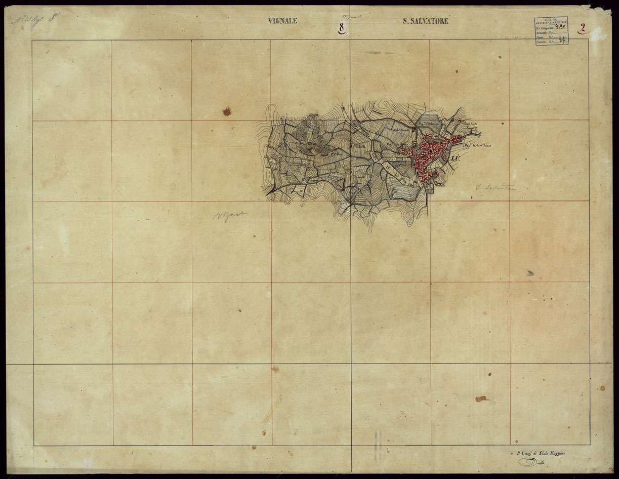 GRUPPO DI 132 FRAZIONI DI MINUTE DI CAMPAGNA ALLA SCALA 1:10.000 DEI RILEVAMENTI ESEGUITI NEL 1853-1867 - VIGNALE - RILIEVI OPERATORE N.8 S. SALVATORE RILIEVI OPERATORE N. 2.