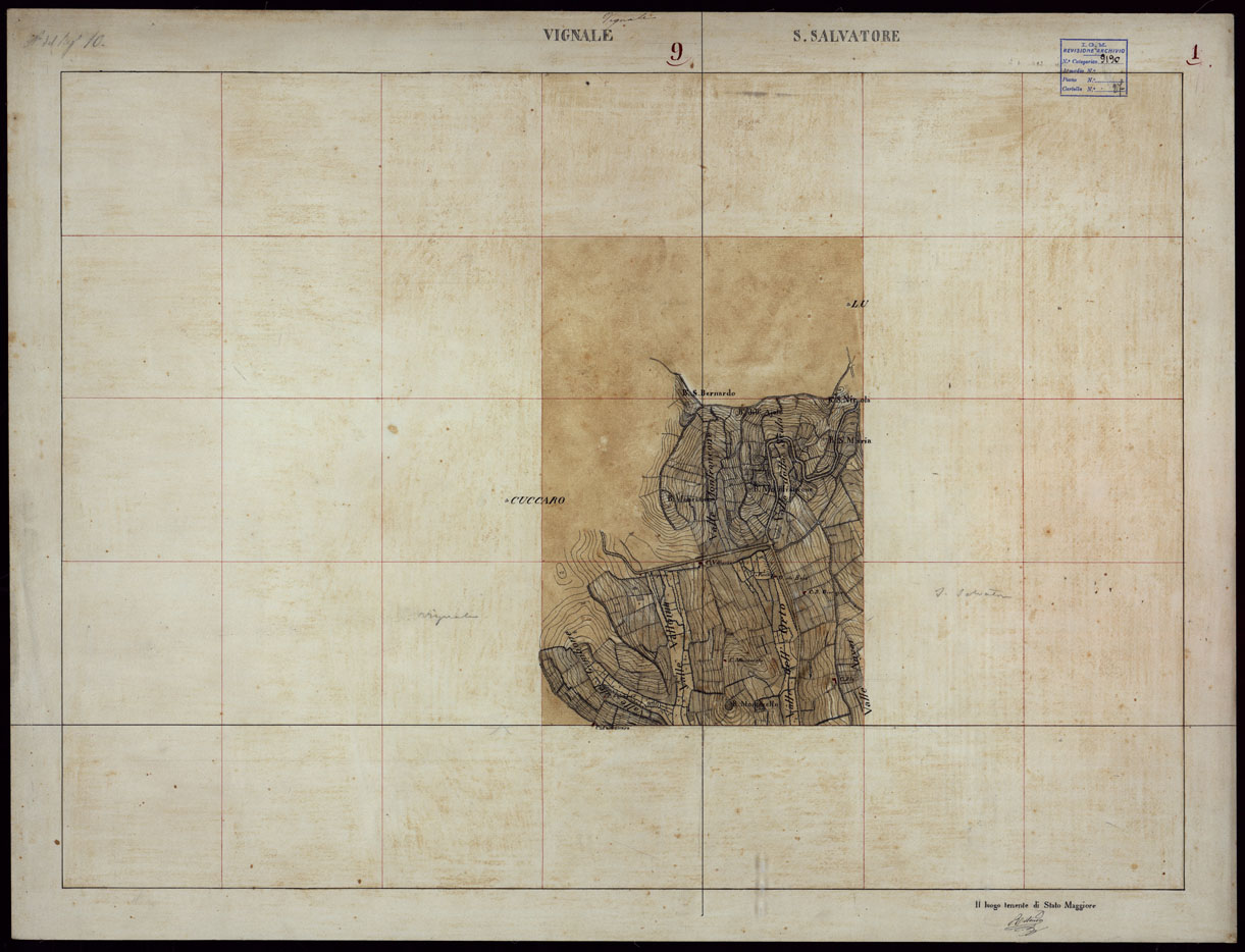 GRUPPO DI 132 FRAZIONI DI MINUTE DI CAMPAGNA ALLA SCALA 1:10.000 DEI RILEVAMENTI ESEGUITI NEL 1853-1867 - VIGNALE - S. SALVATORE - RILIEVI OPERATORE N. 1.