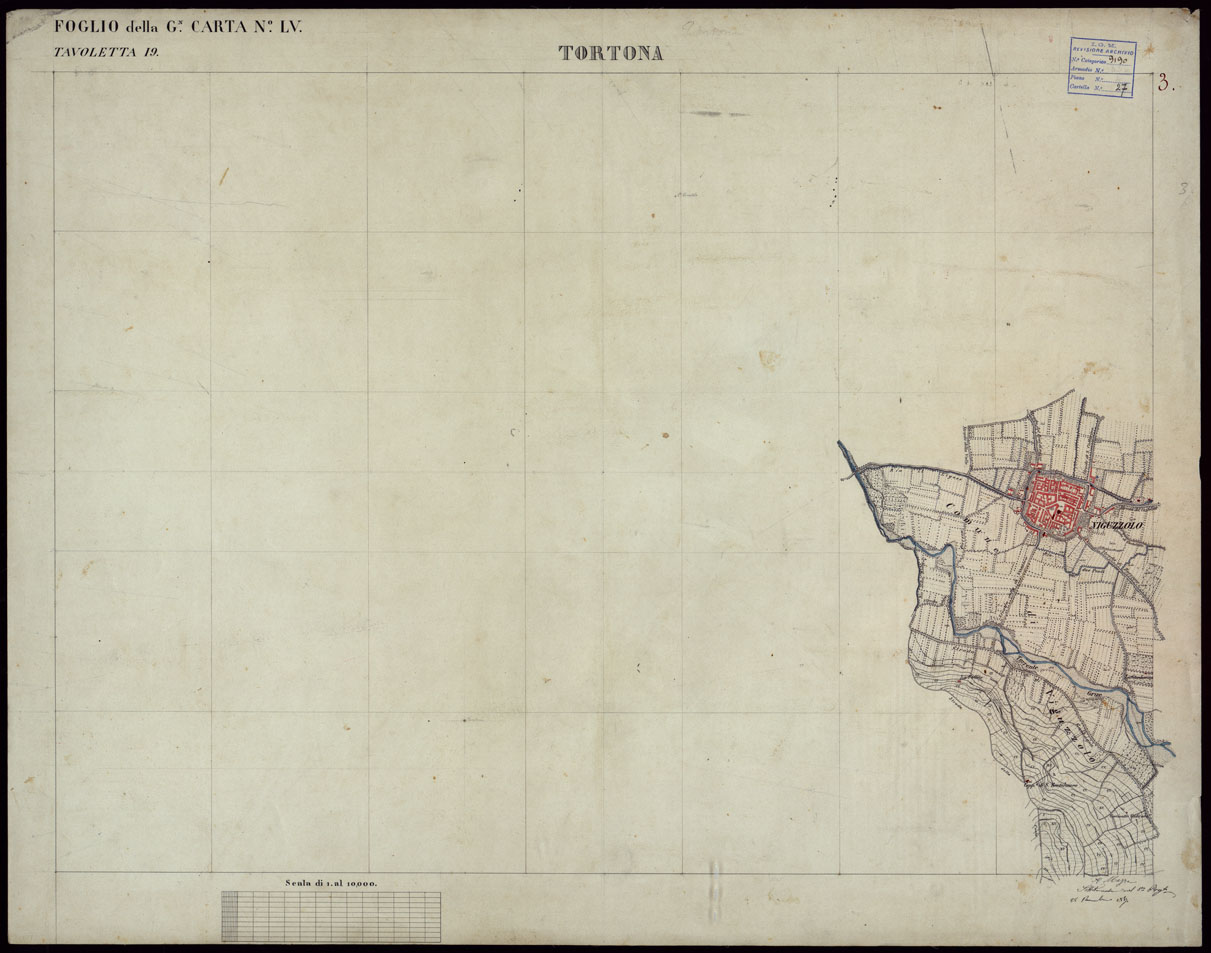 GRUPPO DI 132 FRAZIONI DI MINUTE DI CAMPAGNA ALLA SCALA 1:10.000 DEI RILEVAMENTI ESEGUITI NEL 1853-1867 - TORTONA - RILIEVI OPERATORE N. 3.