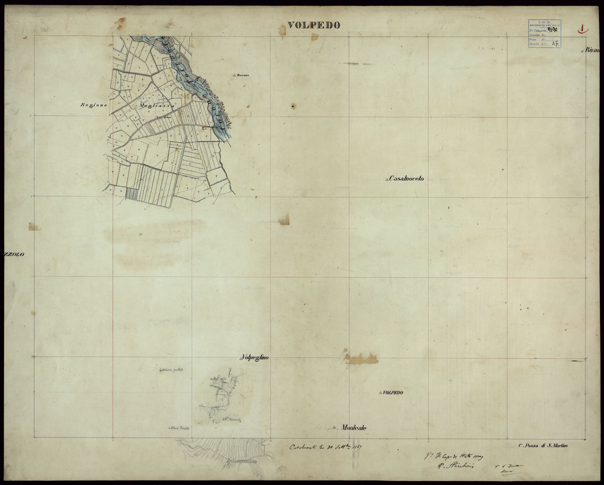 GRUPPO DI 132 FRAZIONI DI MINUTE DI CAMPAGNA ALLA SCALA 1:10.000 DEI RILEVAMENTI ESEGUITI NEL 1853-1867 - VOLPEDO - RILIEVI OPERATORE N. 1.