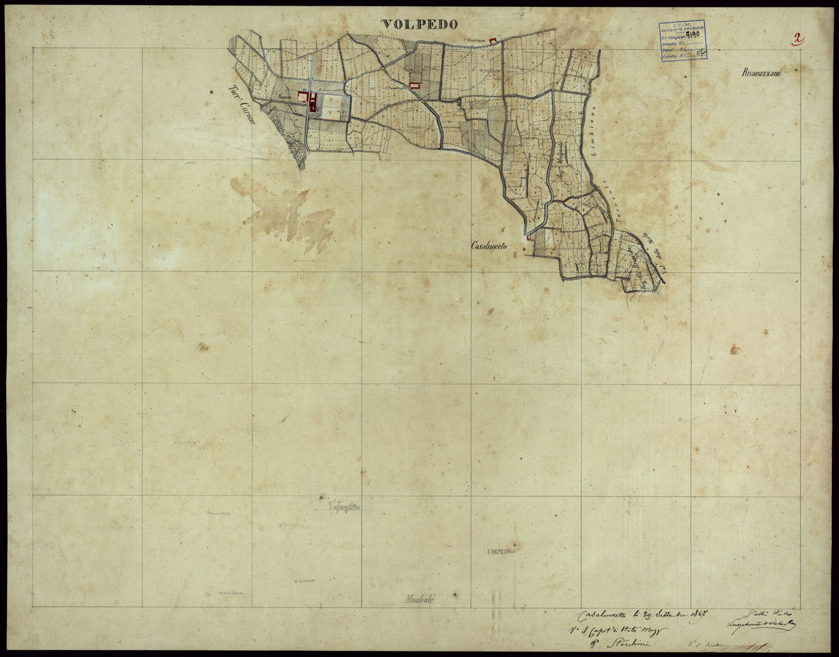GRUPPO DI 132 FRAZIONI DI MINUTE DI CAMPAGNA ALLA SCALA 1:10.000 DEI RILEVAMENTI ESEGUITI NEL 1853-1867 - VOLPEDO - RILIEVI OPERATORE N. 2.