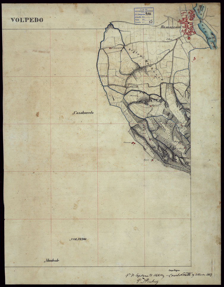 GRUPPO DI 132 FRAZIONI DI MINUTE DI CAMPAGNA ALLA SCALA 1:10.000 DEI RILEVAMENTI ESEGUITI NEL 1853-1867 - VOLPEDO - RILIEVI OPERATORE N. 3.