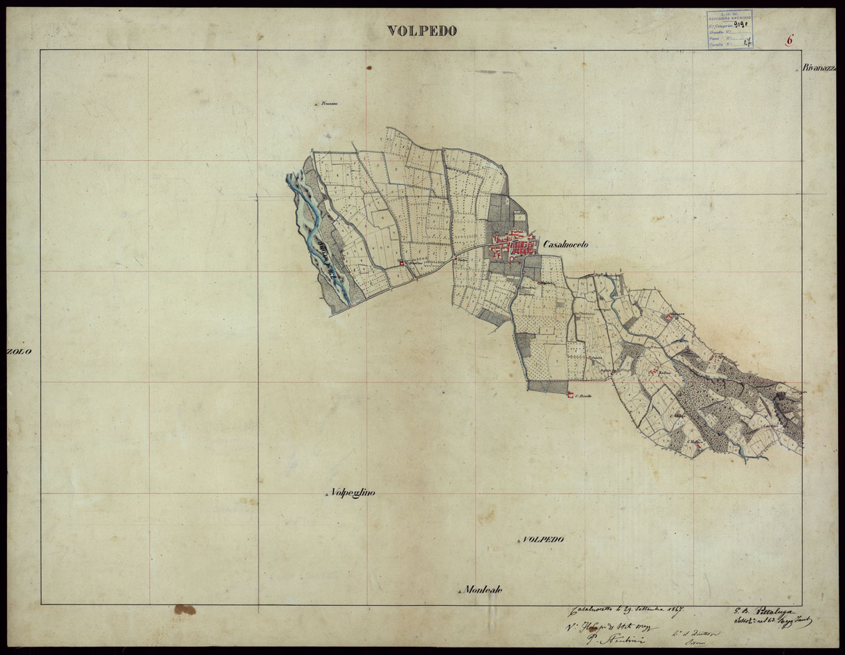 GRUPPO DI 132 FRAZIONI DI MINUTE DI CAMPAGNA ALLA SCALA 1:10.000 DEI RILEVAMENTI ESEGUITI NEL 1853-1867 - VOLPEDO - RILIEVI OPERATORE N. 6