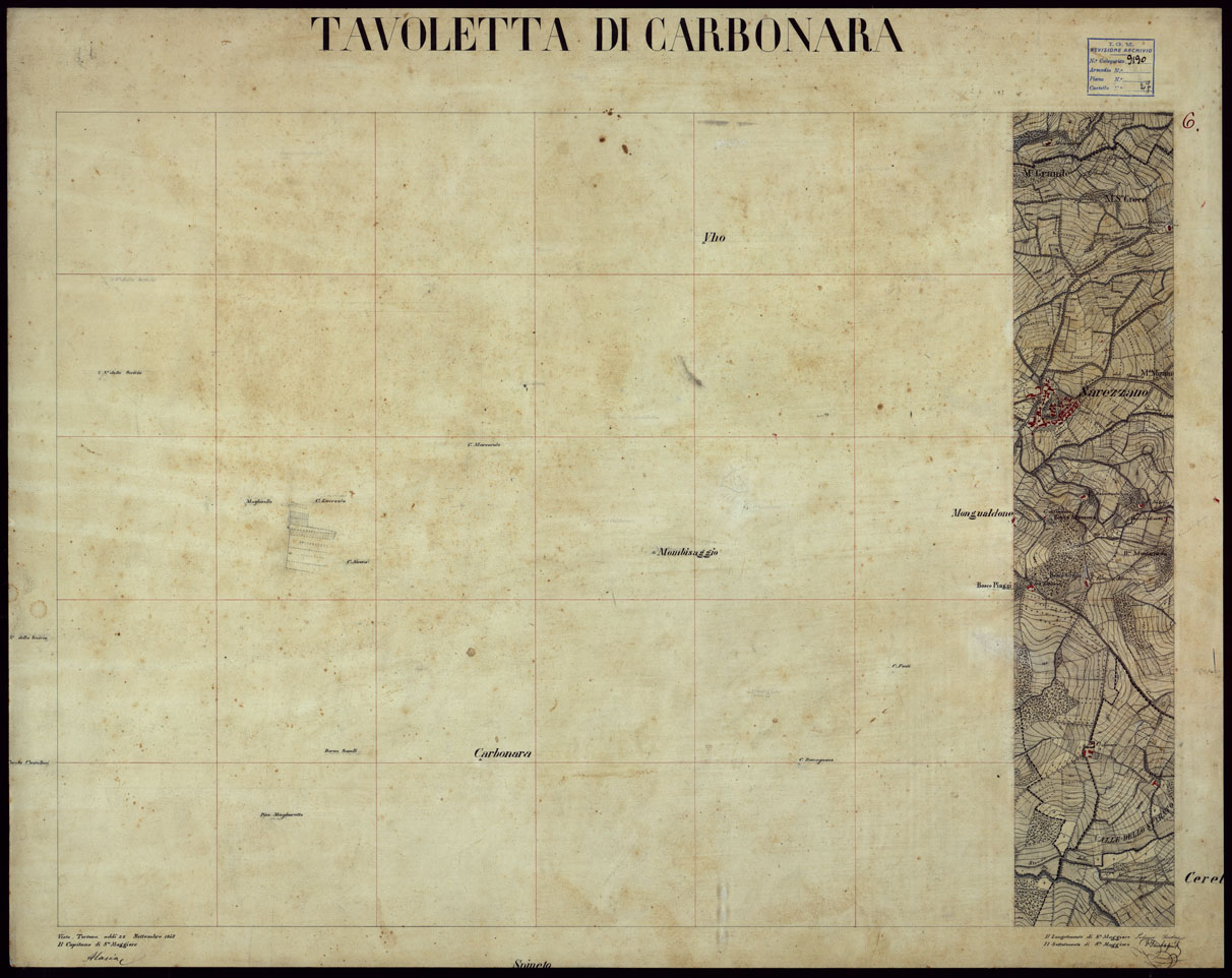 GRUPPO DI 132 FRAZIONI DI MINUTE DI CAMPAGNA ALLA SCALA 1:10.000 DEI RILEVAMENTI ESEGUITI NEL 1853-1867 - CARBONARA - RILIEVI OPERATORE N. 6