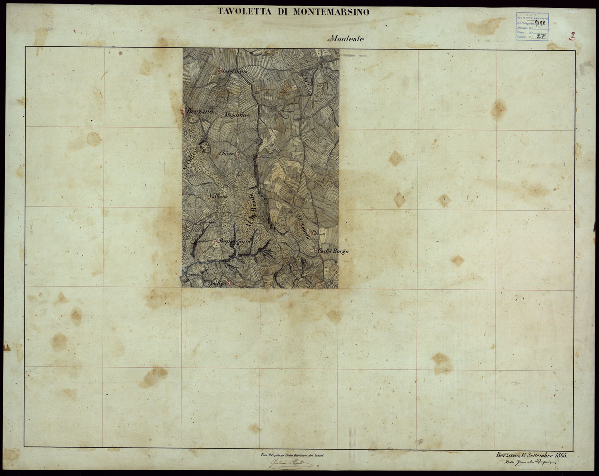 GRUPPO DI 132 FRAZIONI DI MINUTE DI CAMPAGNA ALLA SCALA 1:10.000 DEI RILEVAMENTI ESEGUITI NEL 1853-1867 - MONTEMARSINO - RILIEVI OPERATORE N. 2
