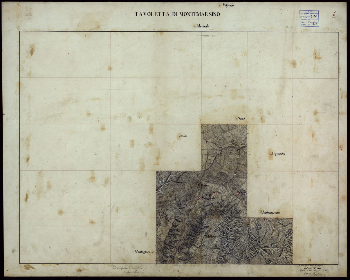 GRUPPO DI 132 FRAZIONI DI MINUTE DI CAMPAGNA ALLA SCALA 1:10.000 DEI RILEVAMENTI ESEGUITI NEL 1853-1867 - MONTEMARSINO - RILIEVI OPERATORE N. 6