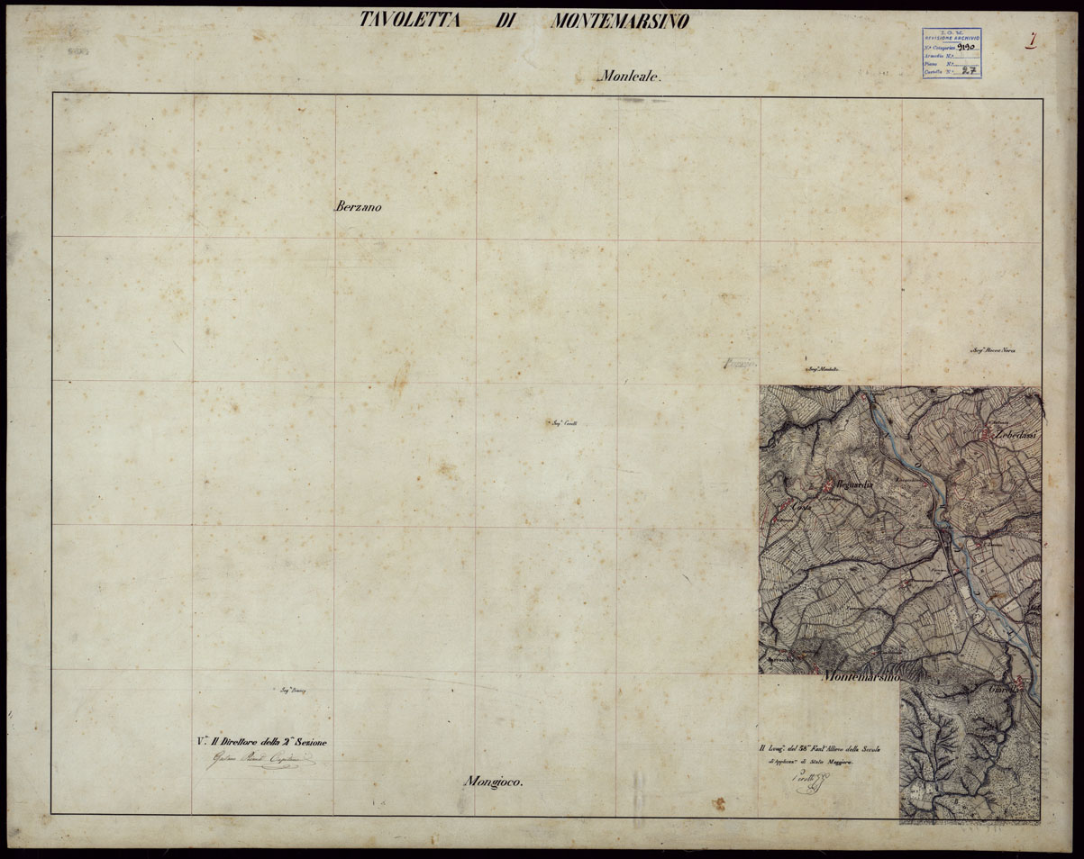 GRUPPO DI 132 FRAZIONI DI MINUTE DI CAMPAGNA ALLA SCALA 1:10.000 DEI RILEVAMENTI ESEGUITI NEL 1853-1867 - MONTEMARSINO - RILIEVI OPERATORE N. 7