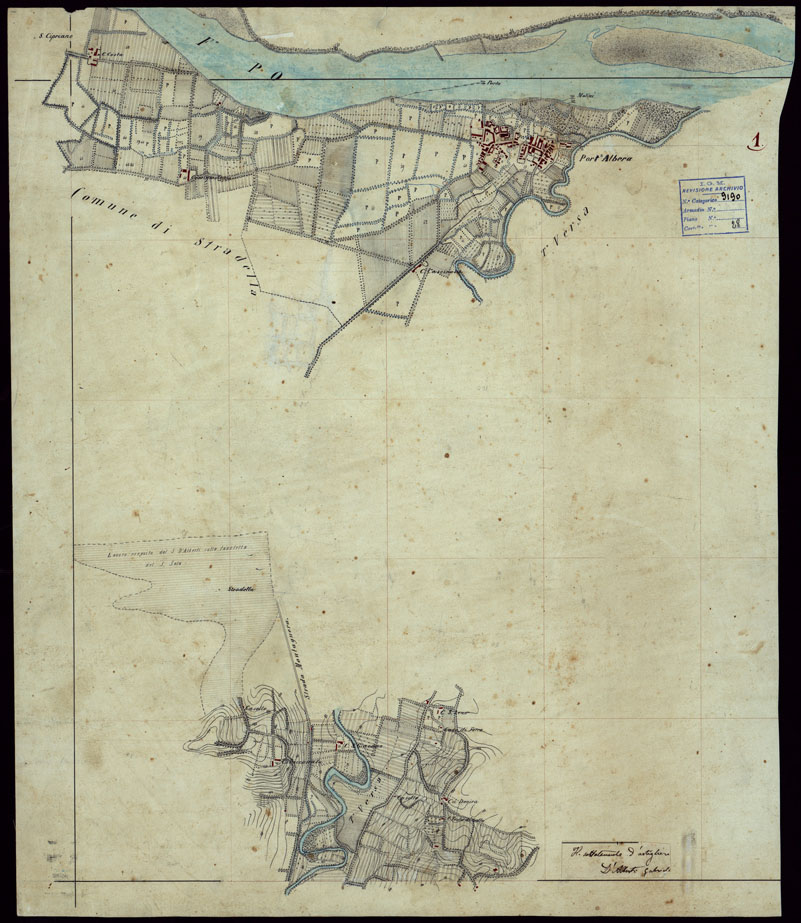 "Gruppo di porzioni di minute di campagna alla scala di 1:10.000, dei rilevamenti eseguiti nel 1853-1867 che servirono per la compilazione delle tavolette del documento n. 206. Sono riunite a fascicoli ognuno con un quadro d'unione dei singoli rilevamenti eseguiti, per ciascuna tavoletta è riportato il nome degli operatori. Il documento è suddiviso nelle cartelle 27 e 28."