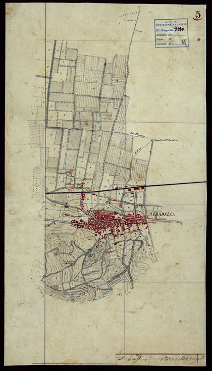 "Gruppo di porzioni di minute di campagna alla scala di 1:10.000, dei rilevamenti eseguiti nel 1853-1867 che servirono per la compilazione delle tavolette del documento n. 206. Sono riunite a fascicoli ognuno con un quadro d'unione dei singoli rilevamenti eseguiti, per ciascuna tavoletta è riportato il nome degli operatori. Il documento è suddiviso nelle cartelle 27 e 28."