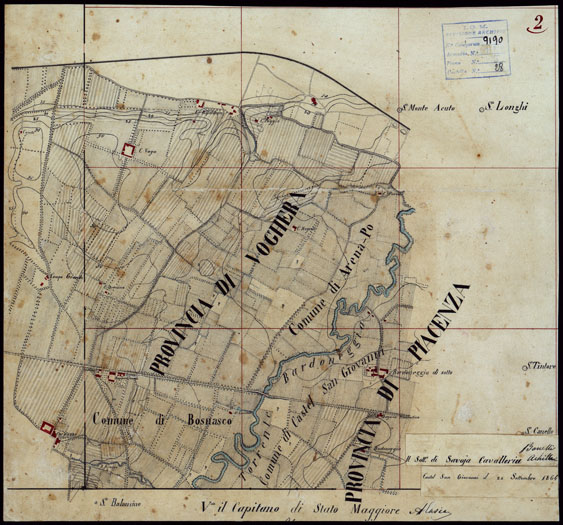 GRUPPO DI 132 FRAZIONI DI MINUTE DI CAMPAGNA ALLA SCALA 1:10.000 DEI RILEVAMENTI ESEGUITI NEL 1853-1867 - CASTANA - MONTU' BECCARIA - RILIEVI OPERATORE N. 2