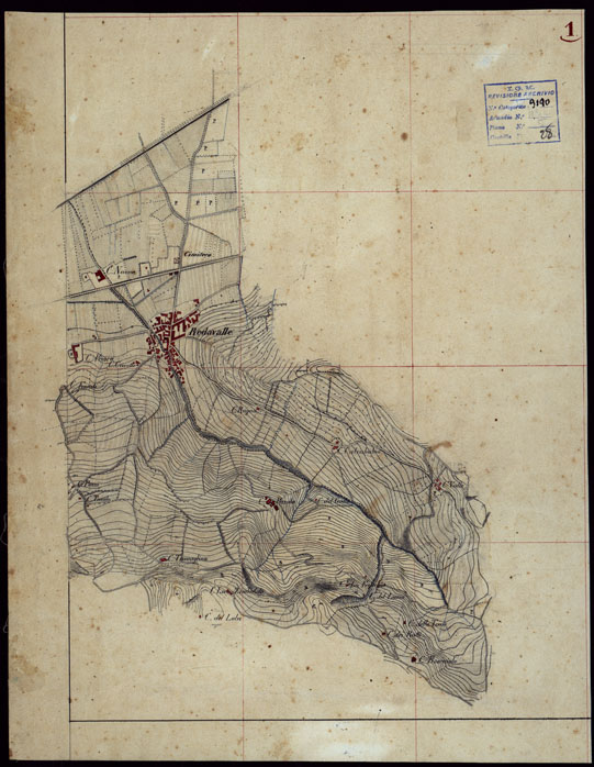 "Gruppo di porzioni di minute di campagna alla scala di 1:10.000, dei rilevamenti eseguiti nel 1853-1867 che servirono per la compilazione delle tavolette del documento n. 206. Sono riunite a fascicoli ognuno con un quadro d'unione dei singoli rilevamenti eseguiti, per ciascuna tavoletta è riportato il nome degli operatori. Il documento è suddiviso nelle cartelle 27 e 28."