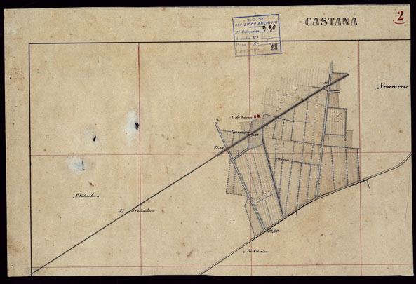 GRUPPO DI 132 FRAZIONI DI MINUTE DI CAMPAGNA ALLA SCALA 1:10.000 DEI RILEVAMENTI ESEGUITI NEL 1853-1867 - CASTANA - MONTU' BECCARIA - RILIEVI OPERATORE N. 2