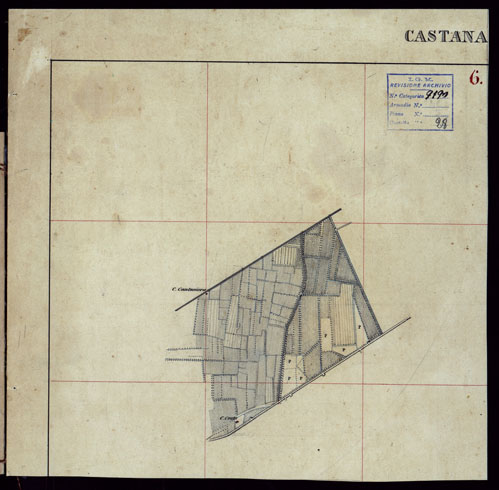 GRUPPO DI 132 FRAZIONI DI MINUTE DI CAMPAGNA ALLA SCALA 1:10.000 DEI RILEVAMENTI ESEGUITI NEL 1853-1867 - CASTANA - MONTU' BECCARIA - RILIEVI OPERATORE N. 6