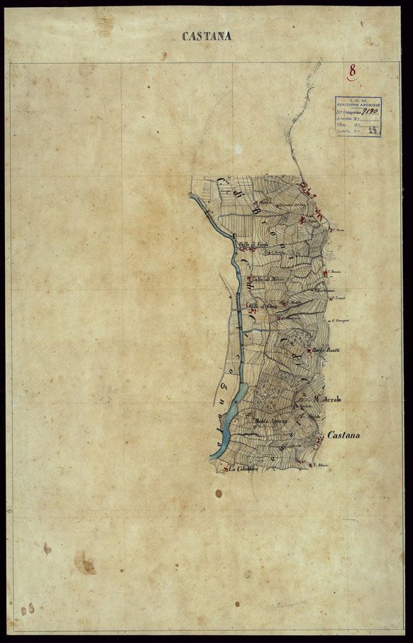 GRUPPO DI 132 FRAZIONI DI MINUTE DI CAMPAGNA ALLA SCALA 1:10.000 DEI RILEVAMENTI ESEGUITI NEL 1853-1867 - CASTANA - MONTU' BECCARIA - RILIEVI OPERATORE N. 8
