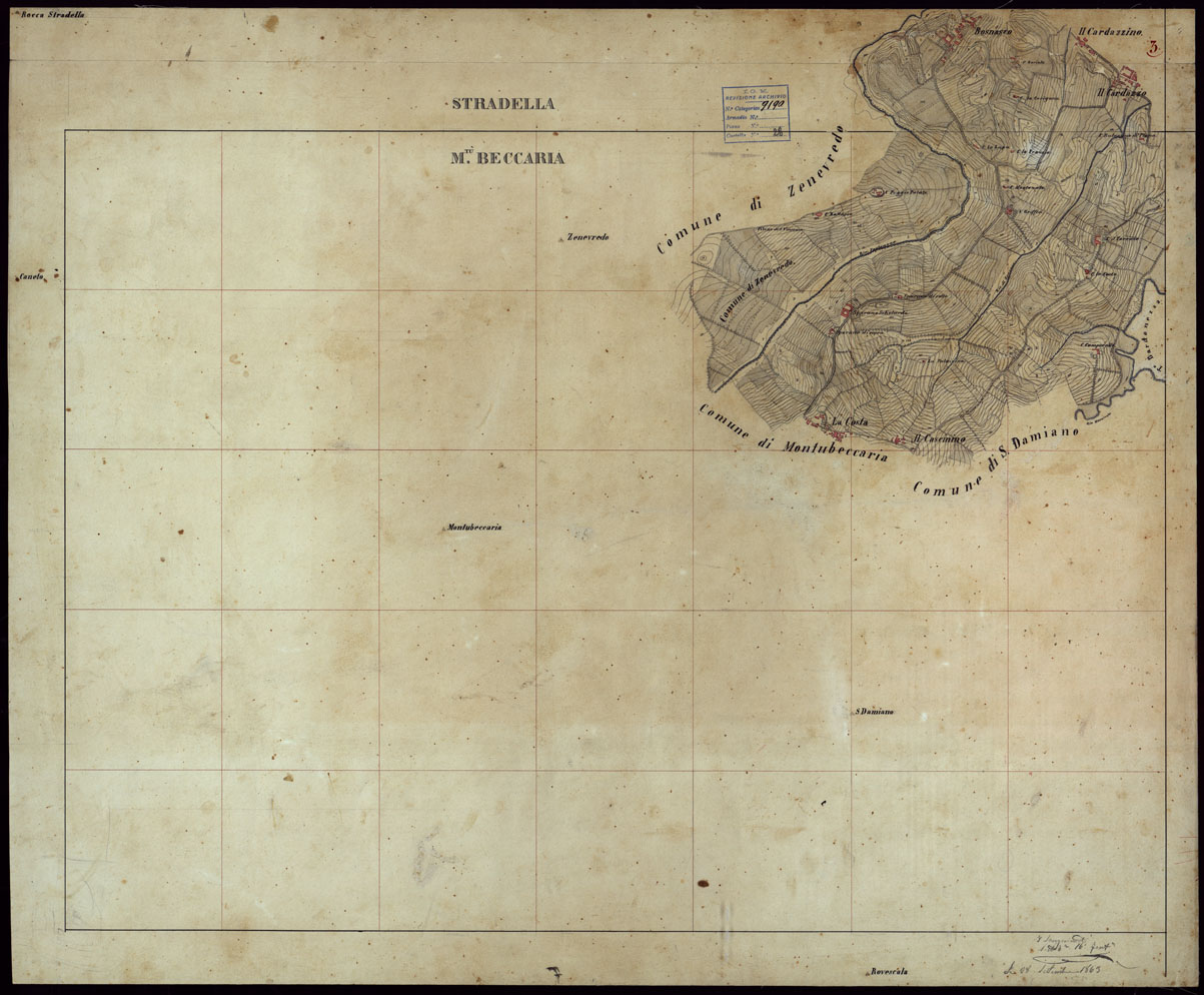 GRUPPO DI 132 FRAZIONI DI MINUTE DI CAMPAGNA ALLA SCALA 1:10.000 DEI RILEVAMENTI ESEGUITI NEL 1853-1867 - CASTANA - MONTU' BECCARIA - RILIEVI OPERATORE N. 3