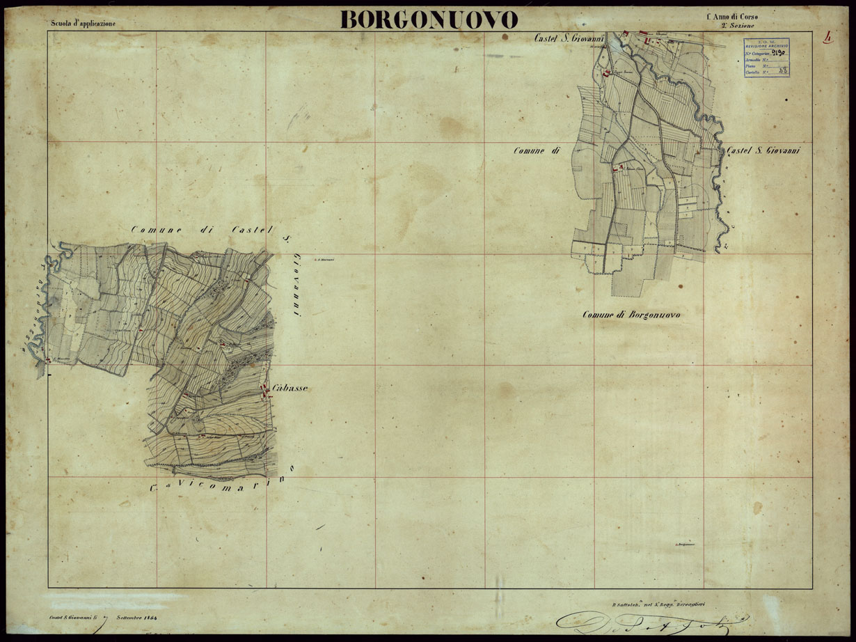GRUPPO DI 132 FRAZIONI DI MINUTE DI CAMPAGNA ALLA SCALA 1:10.000 DEI RILEVAMENTI ESEGUITI NEL 1853-1867 - BORGONUOVO - RILIEVI OPERATORE N. 4