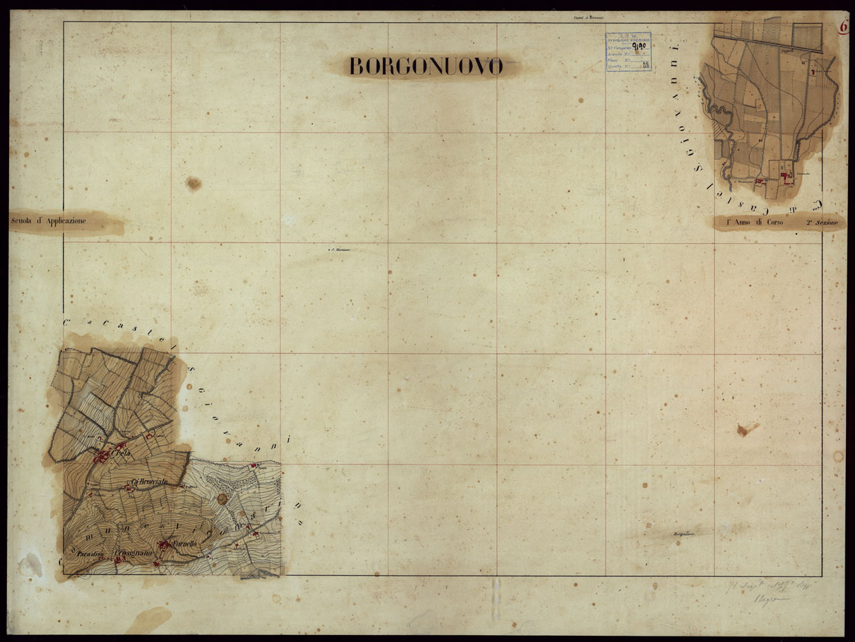 GRUPPO DI 132 FRAZIONI DI MINUTE DI CAMPAGNA ALLA SCALA 1:10.000 DEI RILEVAMENTI ESEGUITI NEL 1853-1867 - BORGONUOVO - RILIEVI OPERATORE N. 6