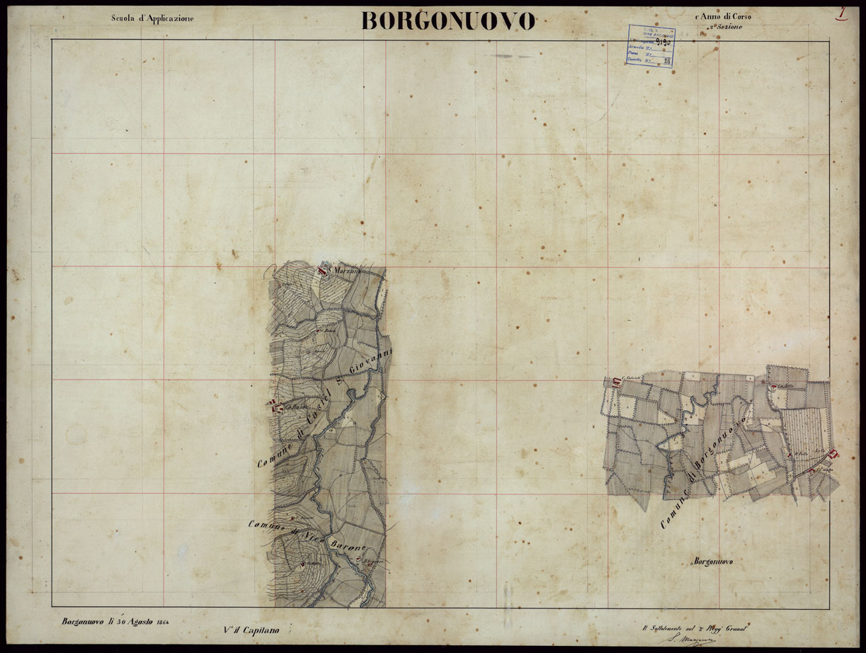 GRUPPO DI 132 FRAZIONI DI MINUTE DI CAMPAGNA ALLA SCALA 1:10.000 DEI RILEVAMENTI ESEGUITI NEL 1853-1867 - BORGONUOVO - RILIEVI OPERATORE N. 7