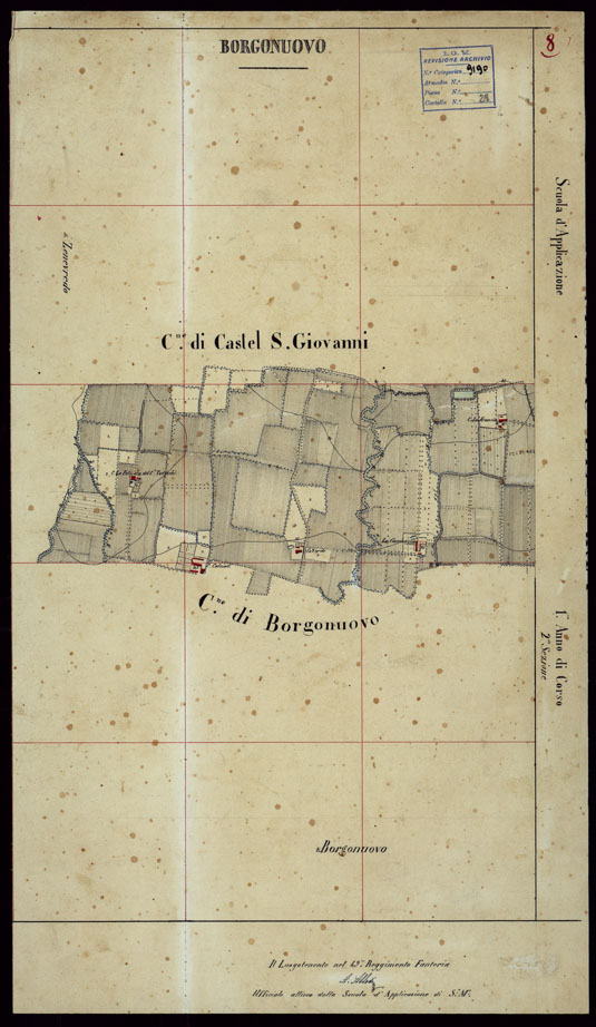 GRUPPO DI 132 FRAZIONI DI MINUTE DI CAMPAGNA ALLA SCALA 1:10.000 DEI RILEVAMENTI ESEGUITI NEL 1853-1867 - BORGONUOVO - RILIEVI OPERATORE N.8