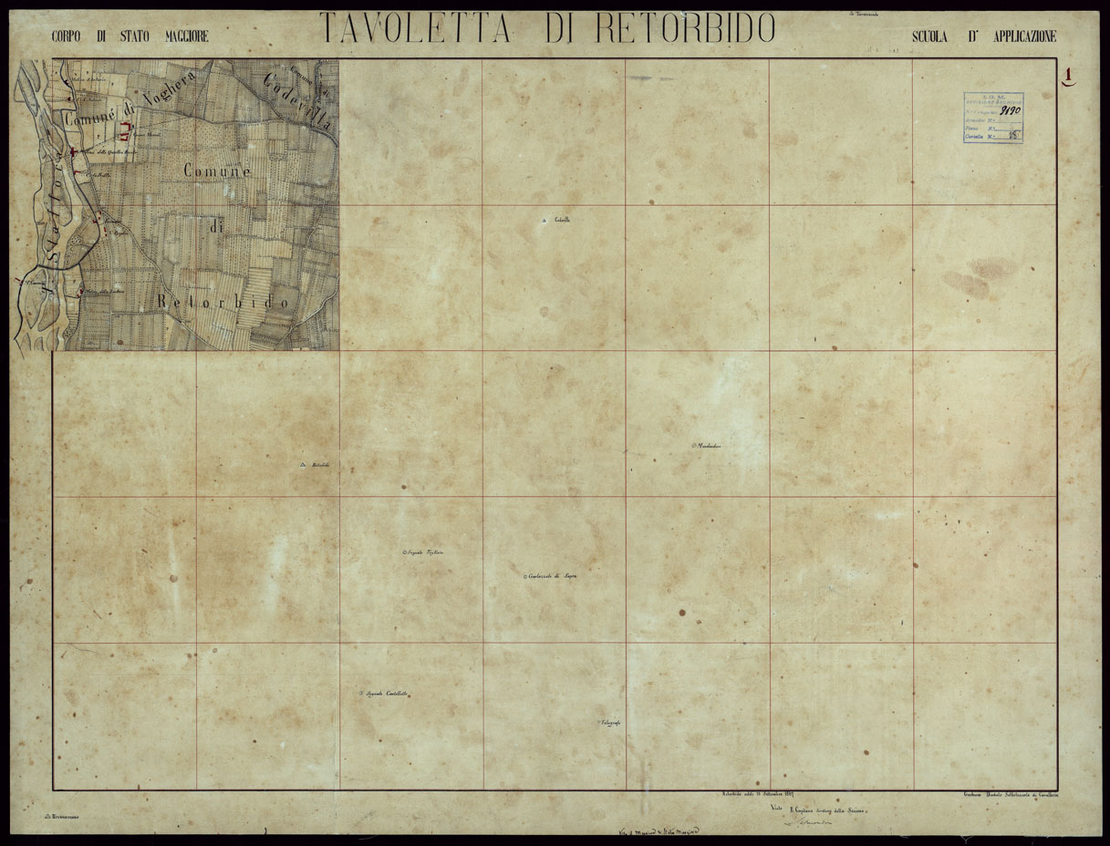 GRUPPO DI 132 FRAZIONI DI MINUTE DI CAMPAGNA ALLA SCALA 1:10.000 DEI RILEVAMENTI ESEGUITI NEL 1853-1867 - RETORBIDO - RILIEVI OPERATORE N. 1