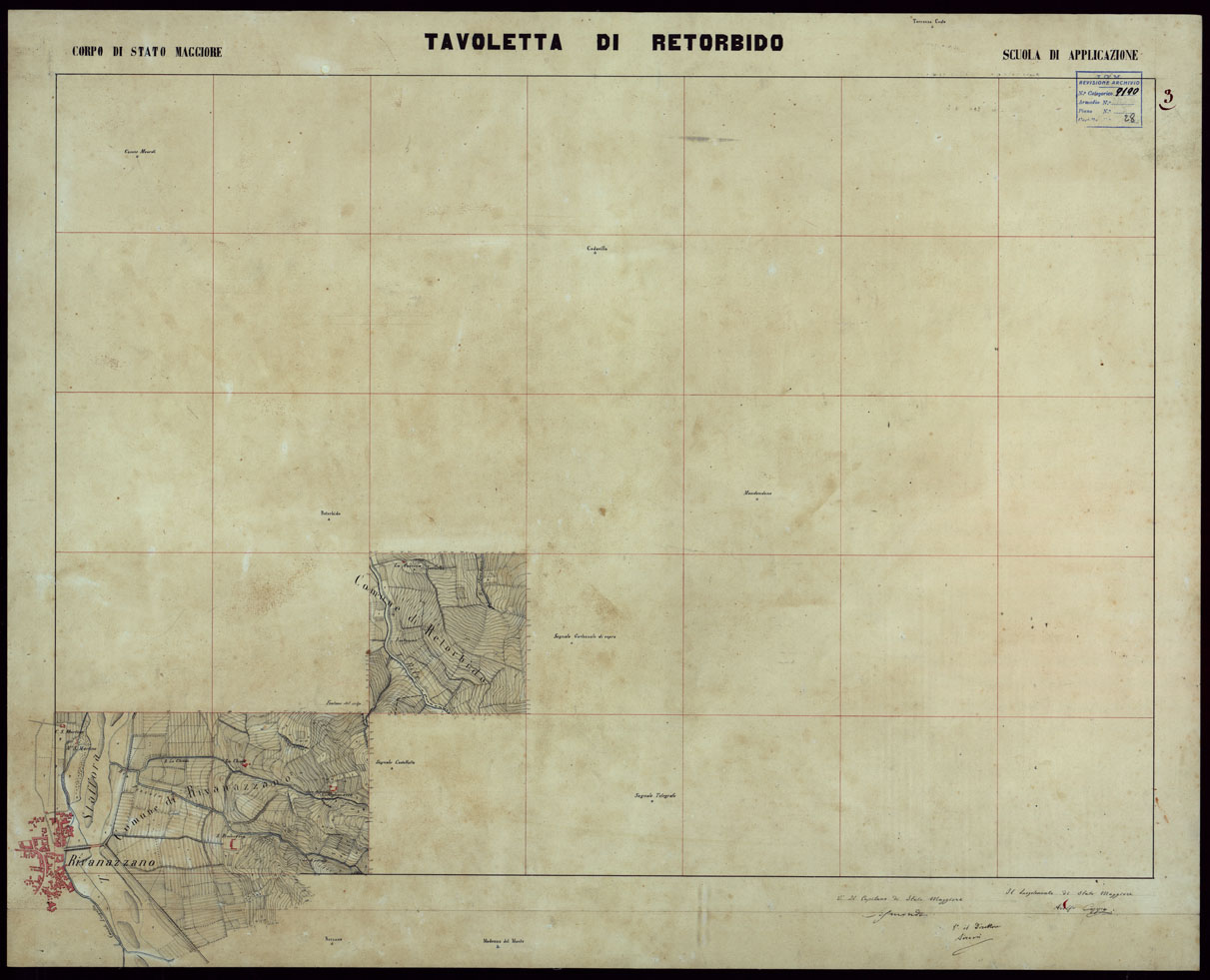 GRUPPO DI 132 FRAZIONI DI MINUTE DI CAMPAGNA ALLA SCALA 1:10.000 DEI RILEVAMENTI ESEGUITI NEL 1853-1867 - RETORBIDO - RILIEVI OPERATORE N. 3