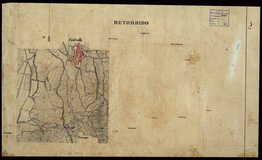 GRUPPO DI 132 FRAZIONI DI MINUTE DI CAMPAGNA ALLA SCALA 1:10.000 DEI RILEVAMENTI ESEGUITI NEL 1853-1867 - RETORBIDO - RILIEVI OPERATORE N. 5