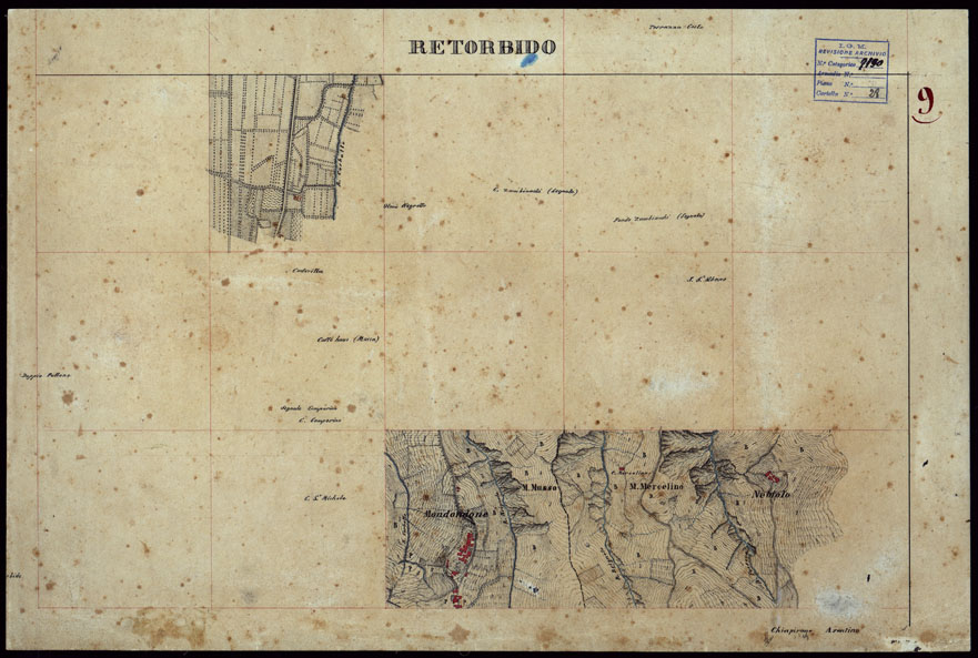 GRUPPO DI 132 FRAZIONI DI MINUTE DI CAMPAGNA ALLA SCALA 1:10.000 DEI RILEVAMENTI ESEGUITI NEL 1853-1867 - RETORBIDO - RILIEVI OPERATORE N. 9