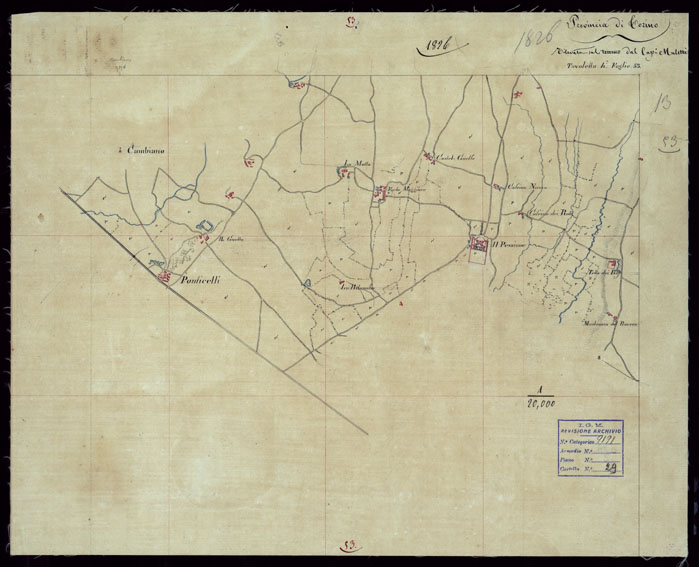 GRUPPO DI DICIANNOVE MINUTE DI CAMPAGNA ESEGUITE ALLA SCALA DI 1:20.000 NEL 1826 - MINUTA 53