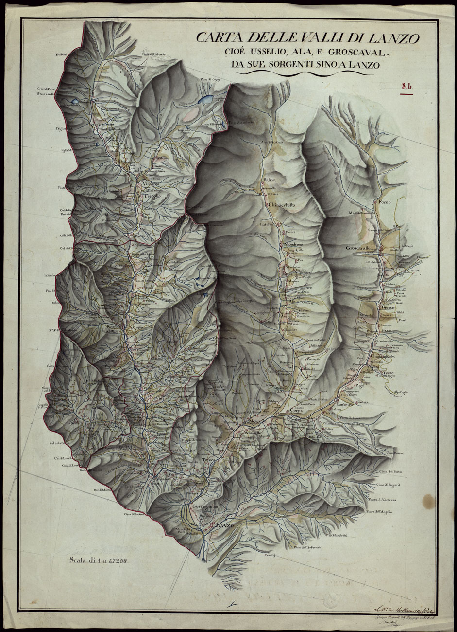 CARTA DELLE VALLI DI LANZO CIOE' USSELIO, ALA, E GROSCAVAL DA SUE SORGENTI SINO A LANZO - 8.B