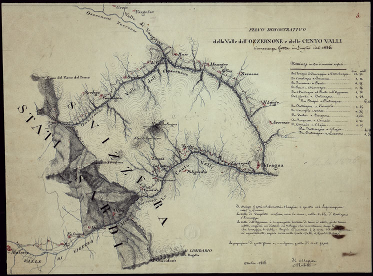 PIANO DIMOSTRATIVO DELLA VALLE DELL'OZZERNONE E DELLE CENTO VALLI RICONOSCENZA FATTA IN LUGLIO DEL 1836.