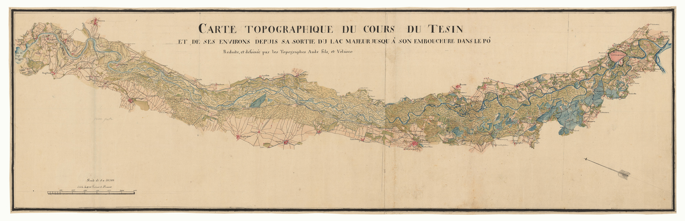 CARTE TOPOGRAPHIQUE DU COURS DU TESIN ET DE SES ENVIRONS DEPUIS SA SORTIE DU LAC MAJEURJUSQU A' SON EMBOUCHURE DANS LE PO'