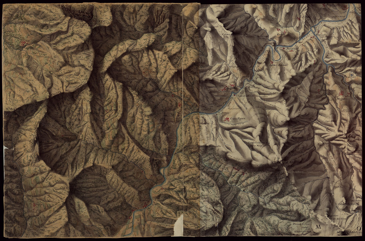 "Gruppo di 100 minute di campagna dei rilevamenti eseguiti negli anni 1816-27 dagli Ufficiali del Corpo di S. M. Capitani D'Isaia Albert e Salasco, Tenenti D'Angennes, Quaglia, Roberti e Scoti, i Sottotenenti Alberti, Bergalli, Mariani, Muletti e S. Marzano. Queste minute sono tutte disegnate artisticamente ad acquerello: rappresentano l'orografia con lo sfumo a luce obliqua, gli abitati in rosso, le acque in azzurro, vegetazioni e colture in verde, strade in nero."