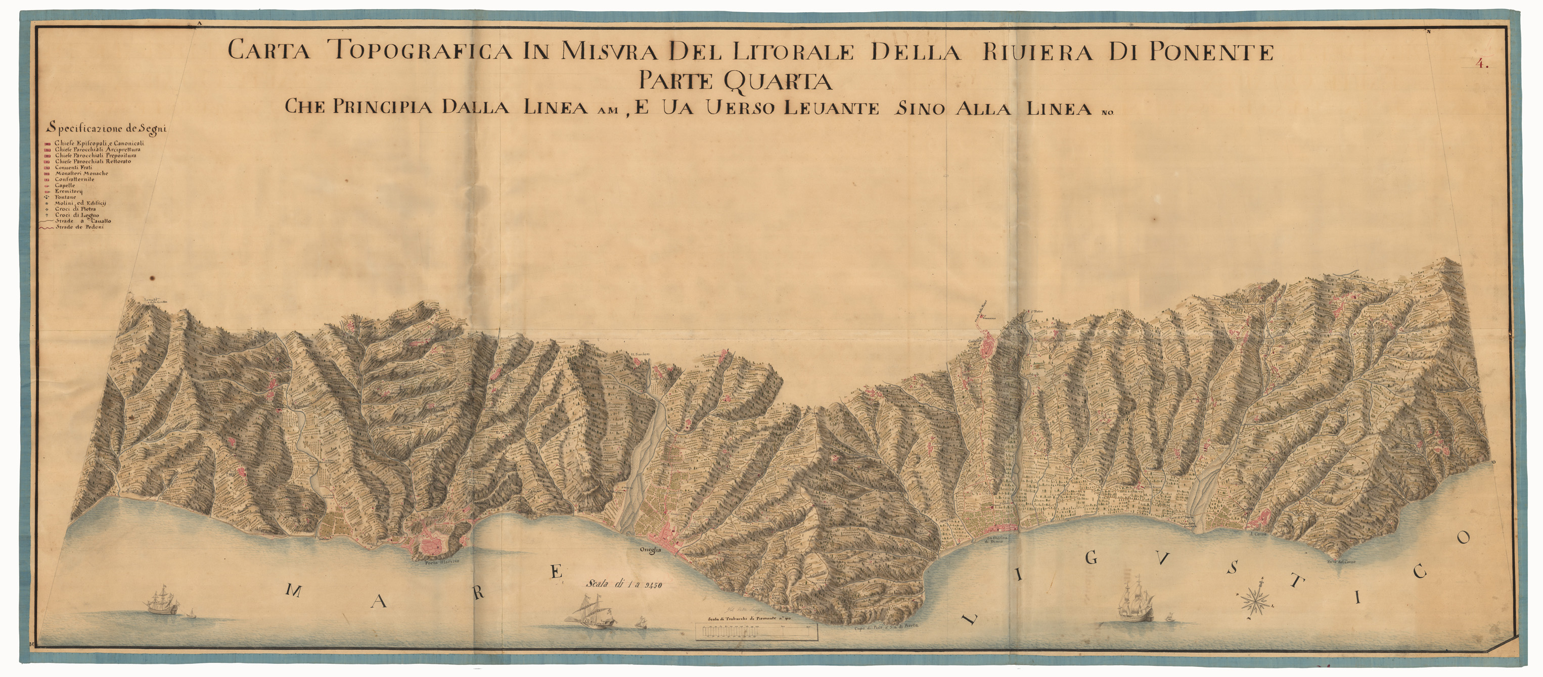 CARTA TOPOGRAFICA IN MISURA DEL LITORALE DELLA RIVERA DI PONENTE PARTE QUARTA CHE PRINCIPIA DALLA LINEA AM, E VA VERSO LEVANTE SINO ALLA LINEA NO RIVIERA DI PONENTE - FOGLIO 4 - SEGNI CONVENZIONALI.